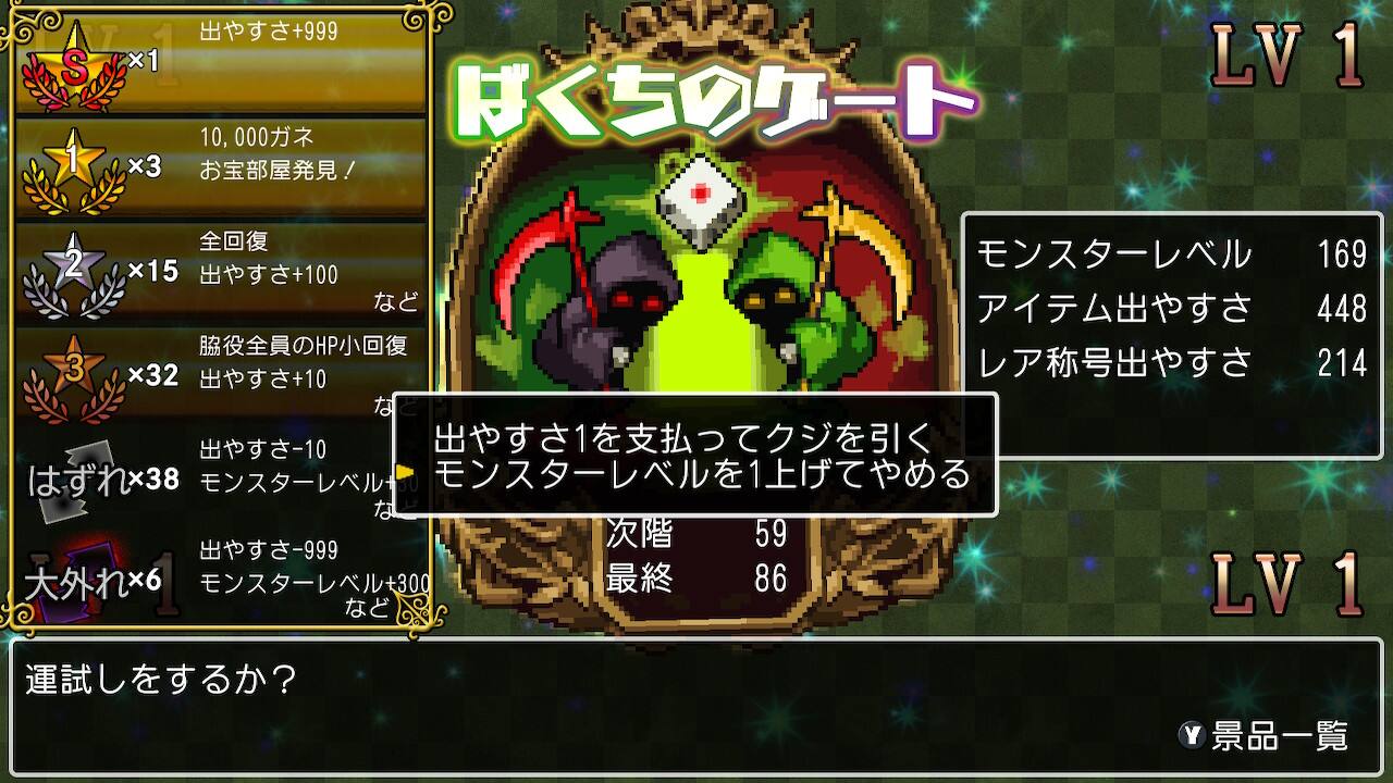 ばくちのゲートで賭けずにモンスターレベルを1上げて
