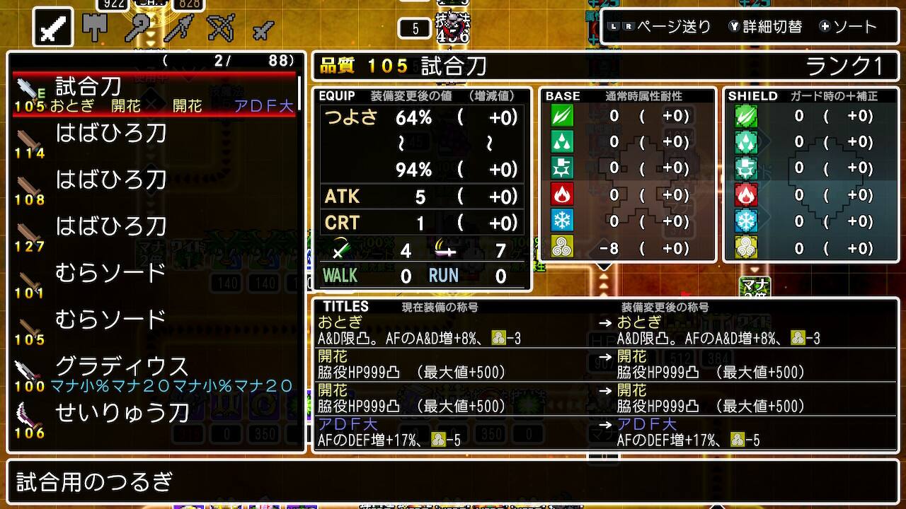 称号用の武器や防具を作っていたり