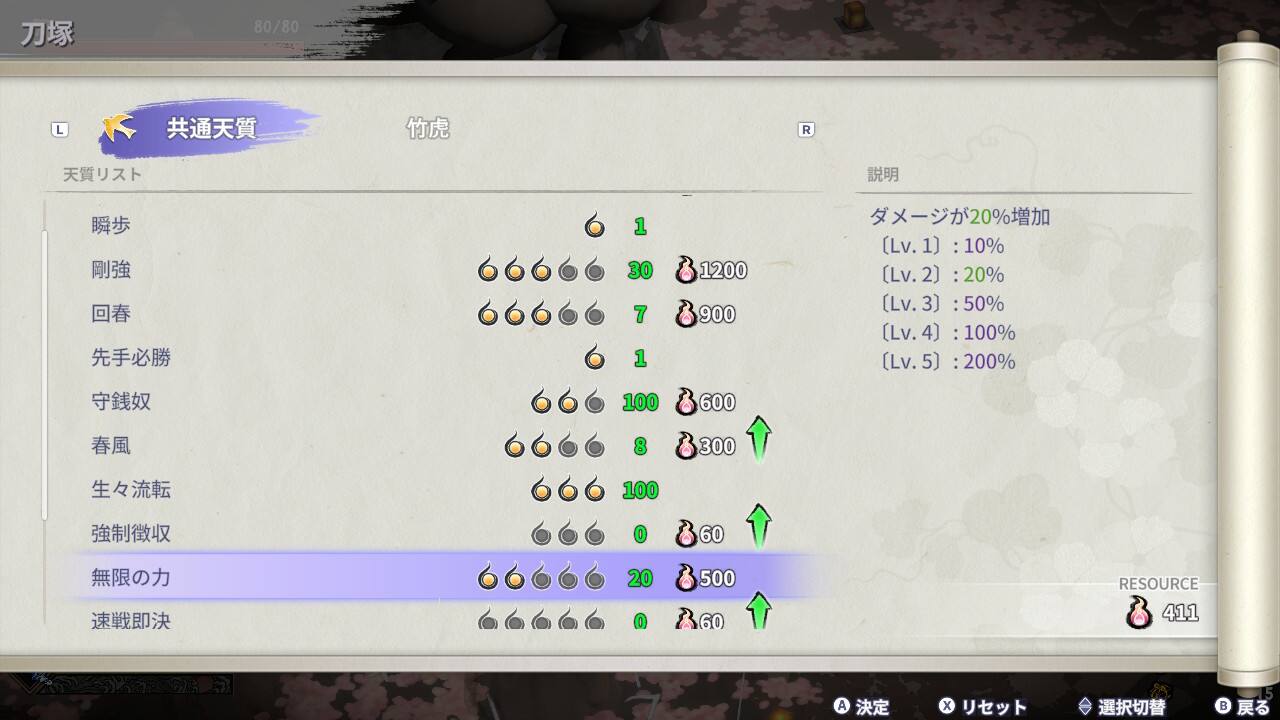 無限の力はまだ50%で100%にするのに2000魂力かかります