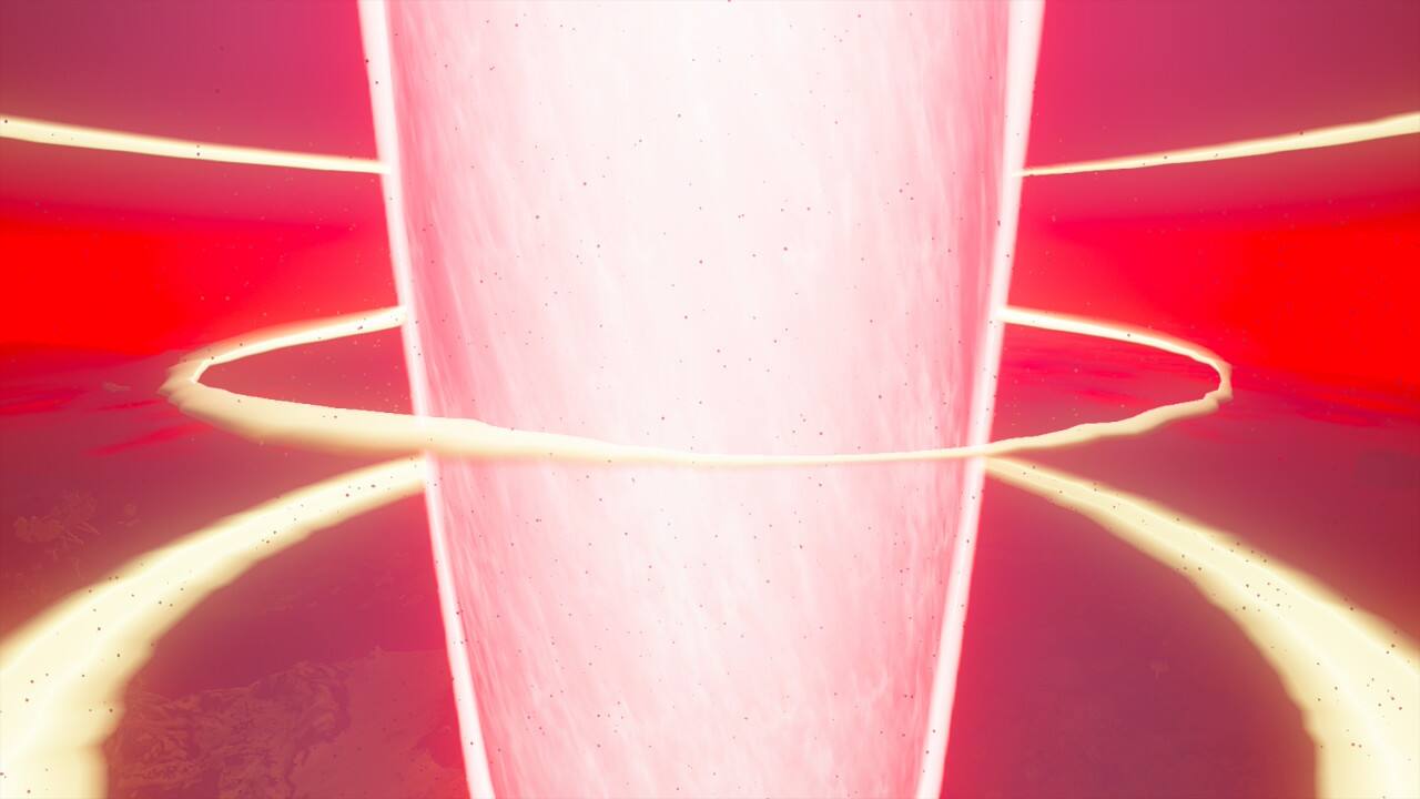右手でビームを放っています